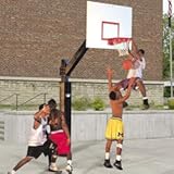 Willtake rugged play in the toughest conditions Completesystem, including goal, has a lifetime functional guarantee 5’ setback for maximum player safety Massive, 6" square pole is the most rigid on the market Backboardis 42" x 60", 12 ga. steel with a white, powder coated graffiti-resistant finish and safety rolled edges to eliminate sharp contact points Exclusive no-fail netlock system for chain, nylon or web nets (premium nylon net included)