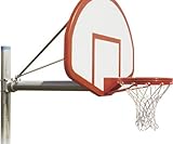 The First Team Renegade Flight Fixed Height In-Ground Basketball Hoop with 54 Inch Fiberglass Fan Shaped Backboard offers commercial durability and the added flexibility sometimes needed on the playground. The heavy duty 4 1/2 Inch O.D. steel post is weather resistant zinc coated to protect the basketball system against the elements.