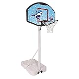 The Spalding® Portable Pool Shark™ Basketball System boasts a 44-in Eco-Composite™ backboard combined with a heavy-duty, solid steel Slam Jam® rim and a white all-weather net. It features built-in wheels for easy portability and a one-piece vertical pole with an extension arm to make it easy to assemble. The base can be filled with water or sand to keep it stable.