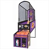 NB1100X - LAL Now everyone can get in the NBA action! The Los Angeles Lakers NBA Hoops Basketball Game is an official Licensed Product of the NBA. Show your true colors and select your favorite NBA team to be the centerpiece of your game room. This Basketball game comes fully equipped with an official NBA sized hoop and a large scoreboard so you will feel the pressure of a real game. Get off the bench and get in the game, with the Los Angeles Lakers NBA Hoops Basketball Game. Features: -Licensed by the NBA. -Comes with official Detroit Pistons Logo emblazoned on sides of machine. -Suitable for residential or commercial use. -Can be set to freeplay or coin operated. -All metal front cabinet. -Backboard made of 3/8 thick polycarbonate. -Commercial grade net sensor. -Height with bonus marquee is 160 degrees. -Adjustable front cabinet for all ages. -Large 40 sec. scoring clock located behind the backboard for a more intense experience. -Games can be linked together for competition and/or space saving. Game Features: -Radius top cage for better arc shots. -Official NBA sized hoop for high scores. -40 second game clock with 4 tall 7 segment display behind backboard. -Hardwood floor angled for faster ball return. -Accessories Included: 9'' Basketballs. -Dimensions: 116'' H x 30'' W x 120'' D.