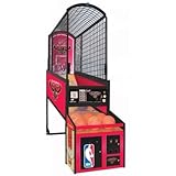 In Stock NB1100X - AH Features: -Licensed by the NBA.-Comes with official Detroit Pistons Logo emblazoned on sides of machine.-Can be set to freeplay or coin operated.-All metal front cabinet.-Backboard made of 3/8 thick polycarbonate.-Commercial grade net sensor.-Height with bonus marquee is 160 degrees.-Adjustable front cabinet for all ages.-Large 40 sec. scoring clock located behind the backboard for a more intense experience.-Games can be linked together for competition and/or space saving.-Radius top cage for better arc shots.-Official NBA sized hoop for high scores.-40 second game clock with 4 tall 7 segment display behind backboard.-Hardwood floor angled for faster ball return. Includes: -Accessories Included: 9'' Basketballs. Dimensions: -Dimensions: 116'' H x 30'' W x 120'' D.