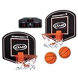 - Comes ready to play with 2 hoops, wireless scoreboard, 2 balls, inflating pump and hanging hardware